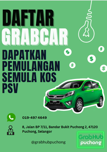 8 April 2025 - Pemandu yang ingin mendaftar sebagai GrabCar Driver perlulah memenuhi syarat-syarat yang telah ditetapkan oleh Grab. Pemandu yang layak untuk mendaftar ialah pemandu yang berwarganegara Malaysia dan berumur 21 tahun ke atas. Selain itu pemandu tersebut mesti memiliki lesen Memandu Kelas D atau DA penuh berserta lesen PSV. Kenderaan yang hendak didaftarkan mesti 15 tahun kebawah atau lebih spesifiknya 14 tahun 6 bulan,mestilah mempunyai geran kereta yang didaftarkan selain daripada atas nama syarikat dan mempunyai insuran yang ada ehailing.